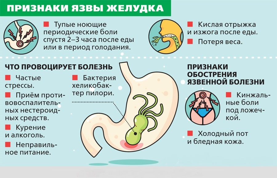 Хеликобактер пилори — бактерия, обитающая в желудке, может клинически не проявляться на протяжении всей жизни, но у некоторых людей приводит к язвенной болезни, некардиальному раку желудка, MALT — лимфоме. Инфекция H.pylori увеличивает риск развития гастродуоденальной язвы и кровотечения у пациентов, принимающих нестероидные противовоспалительные препараты (НПВП). Основной фактор распространения инфекции — социально-экономический статус в детском возрасте. При наличии показаний должна быть проведена эрадикационная терапия.