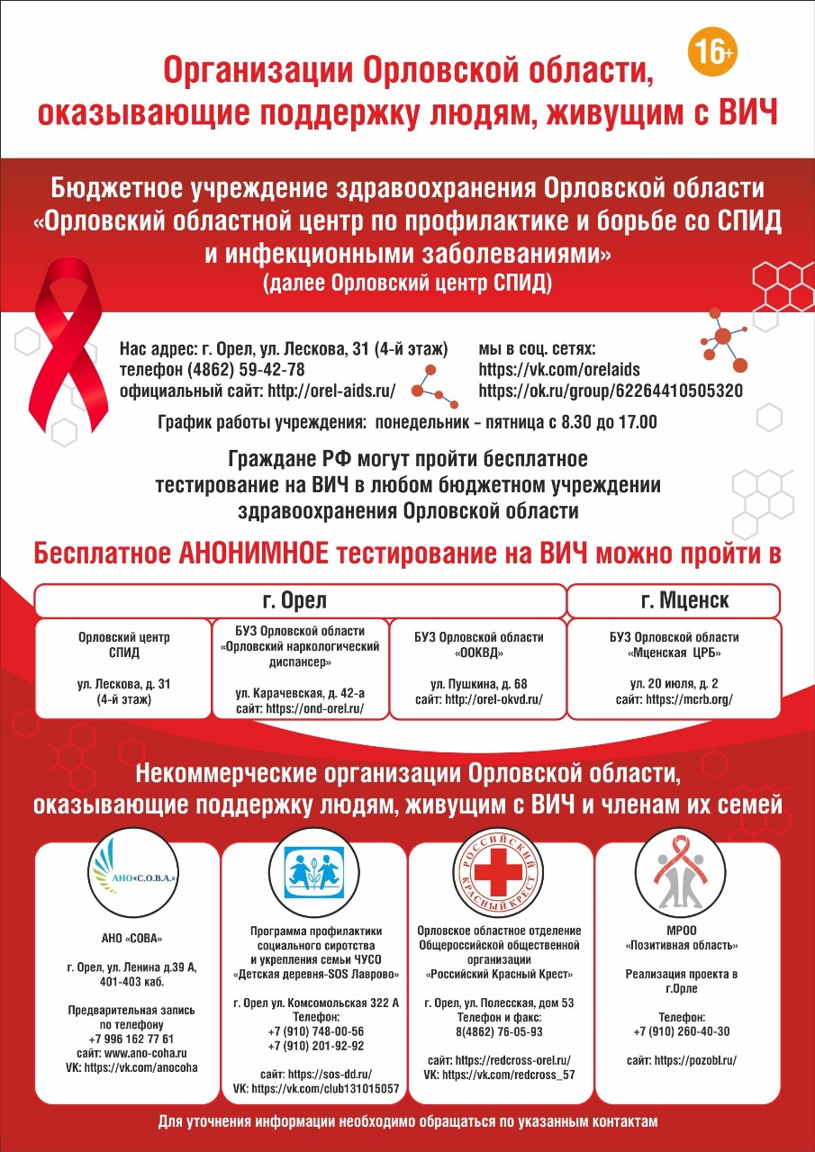 При поддержке и тесном взаимодействии с Орловским центром СПИД, специалистами поликлиники ведется непрерывная работа по своевременному выявлению, предотвращению распространения и оказанию необходимой медико-санитарной помощи населению с этой инфекцией. Напоминаем, что ВИЧ передается только через определенные биологические жидкости организма человека.
